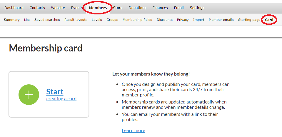 Simply navigate to Members > Card and click “Start creating a card”.