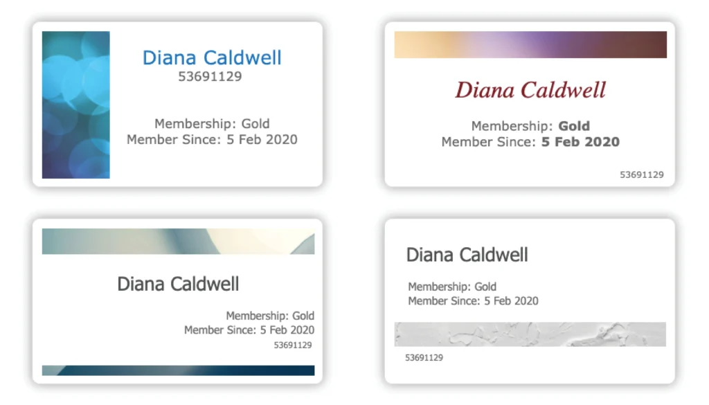 Alternatively, you can get creative and design your own membership card template from scratch! Here are some examples that we’ve created to get you inspired: